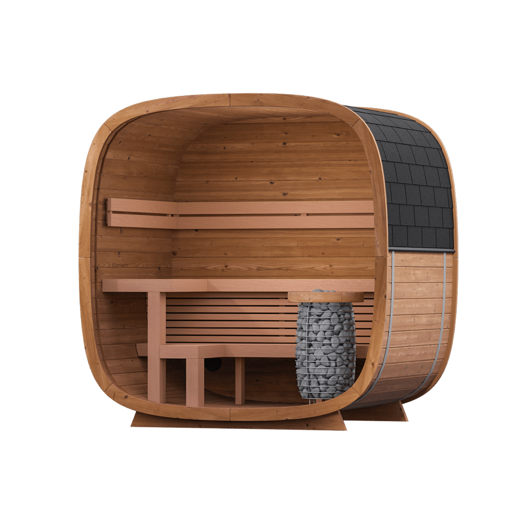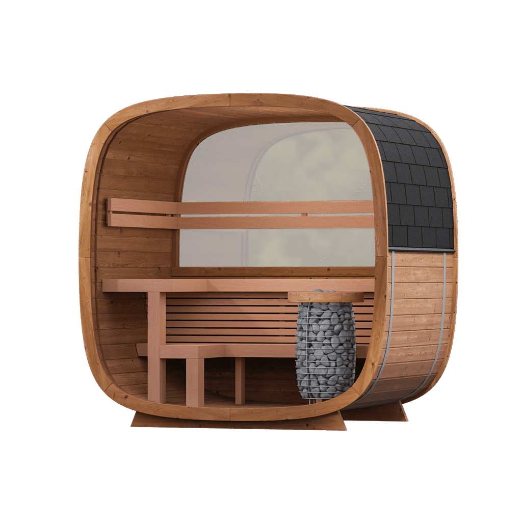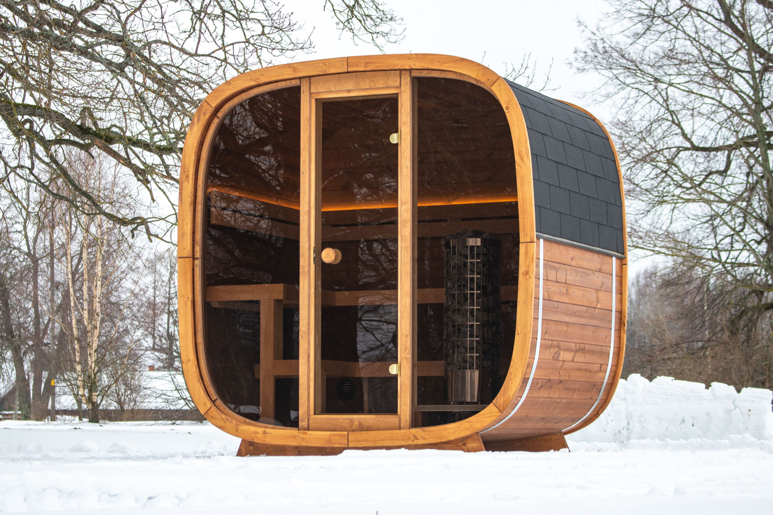The Dice POCKET is the smallest sauna in the DICE series. It’s compact enough to fit into tight garden spaces but still seats up to four people.