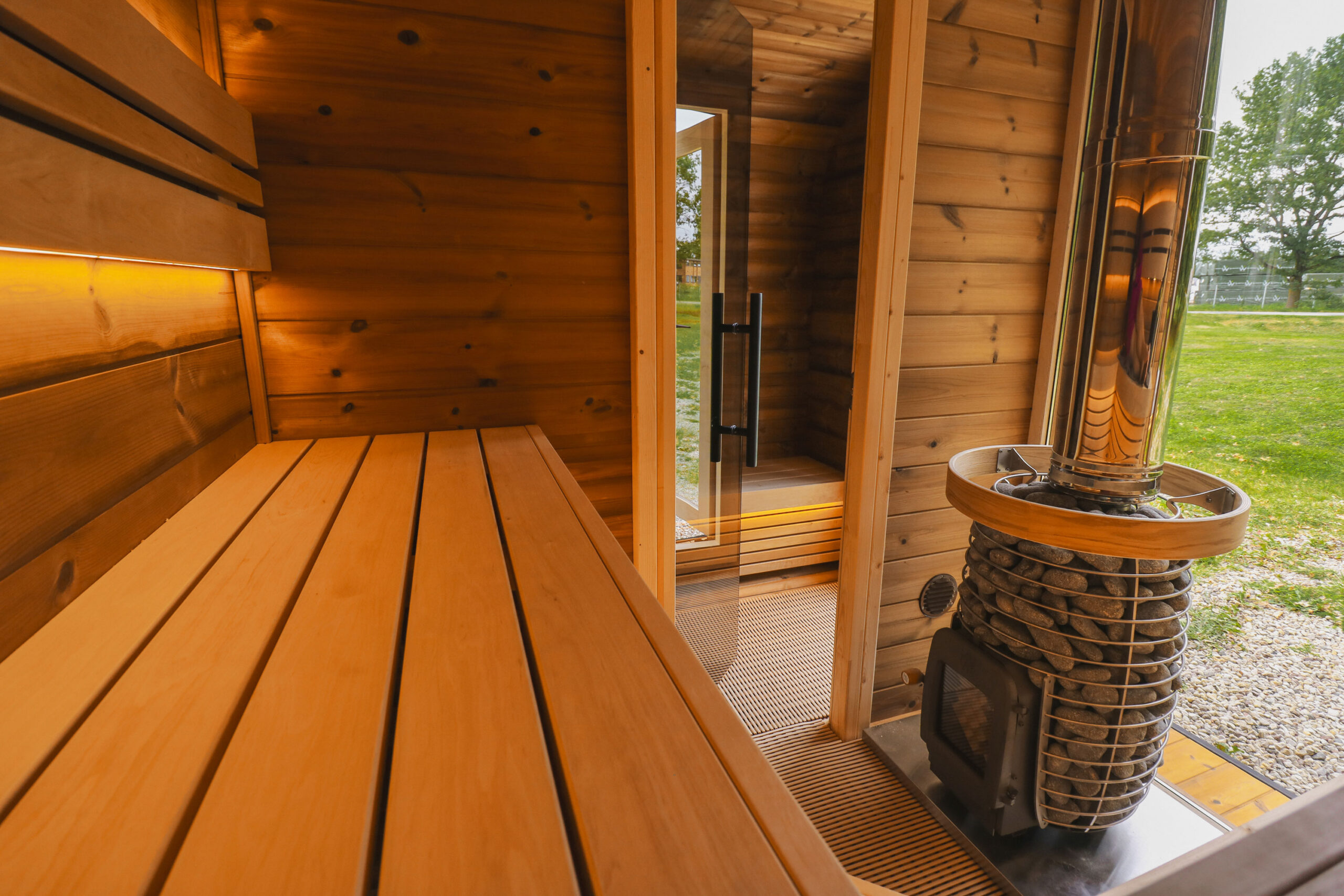 sauna room and a cozy front room, providing the perfect space for cooling down between sauna sessions.