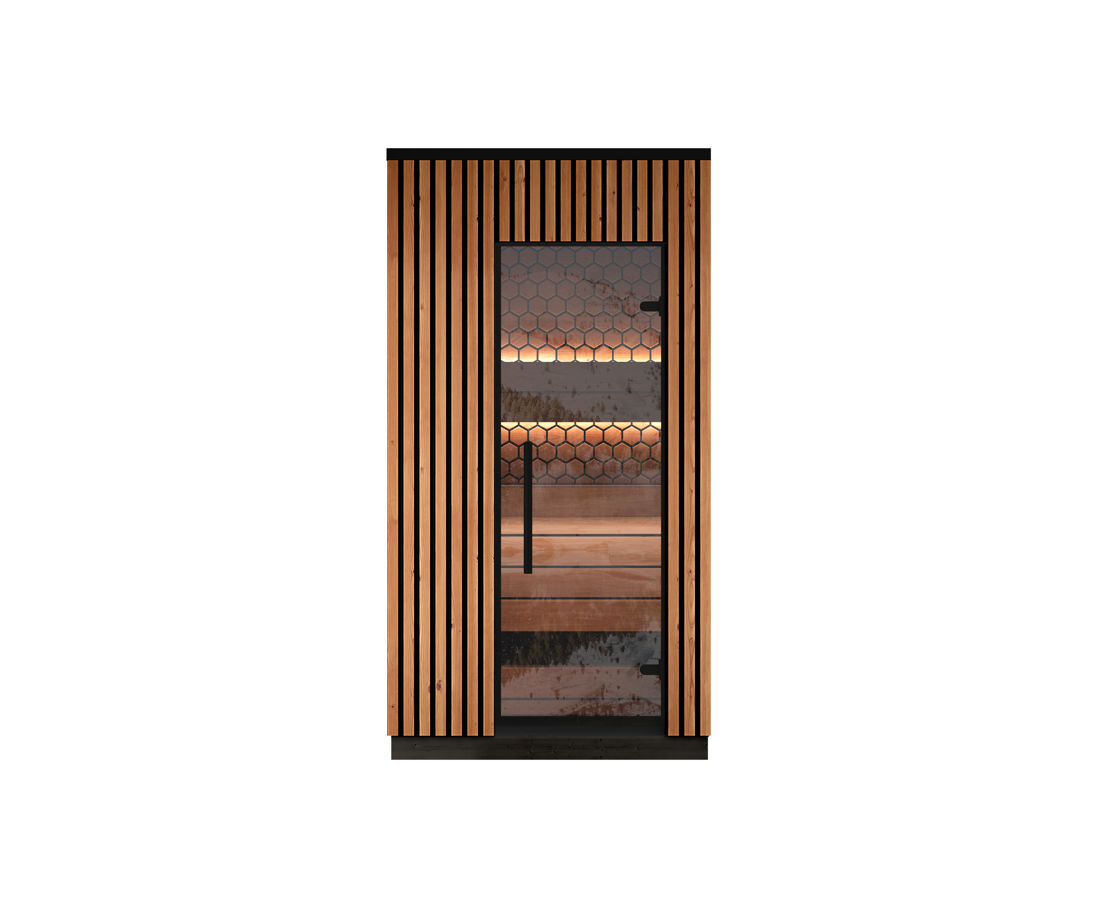 Our most compact, for one. Takes minimal space and is perfect for a private corner or terrace. Your personal sauna ready whenever you need a quiet reset.