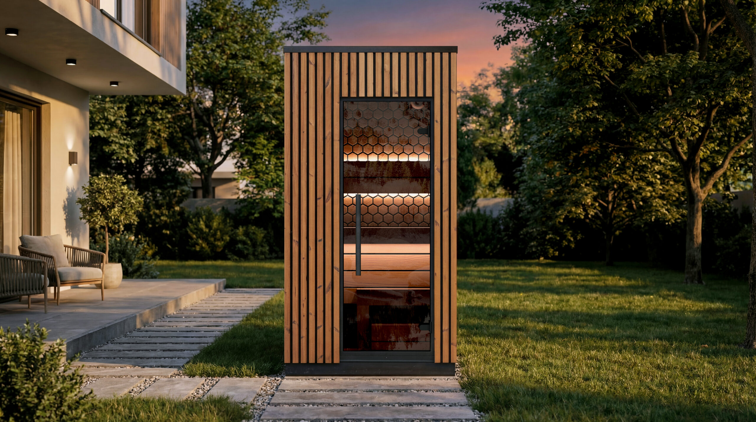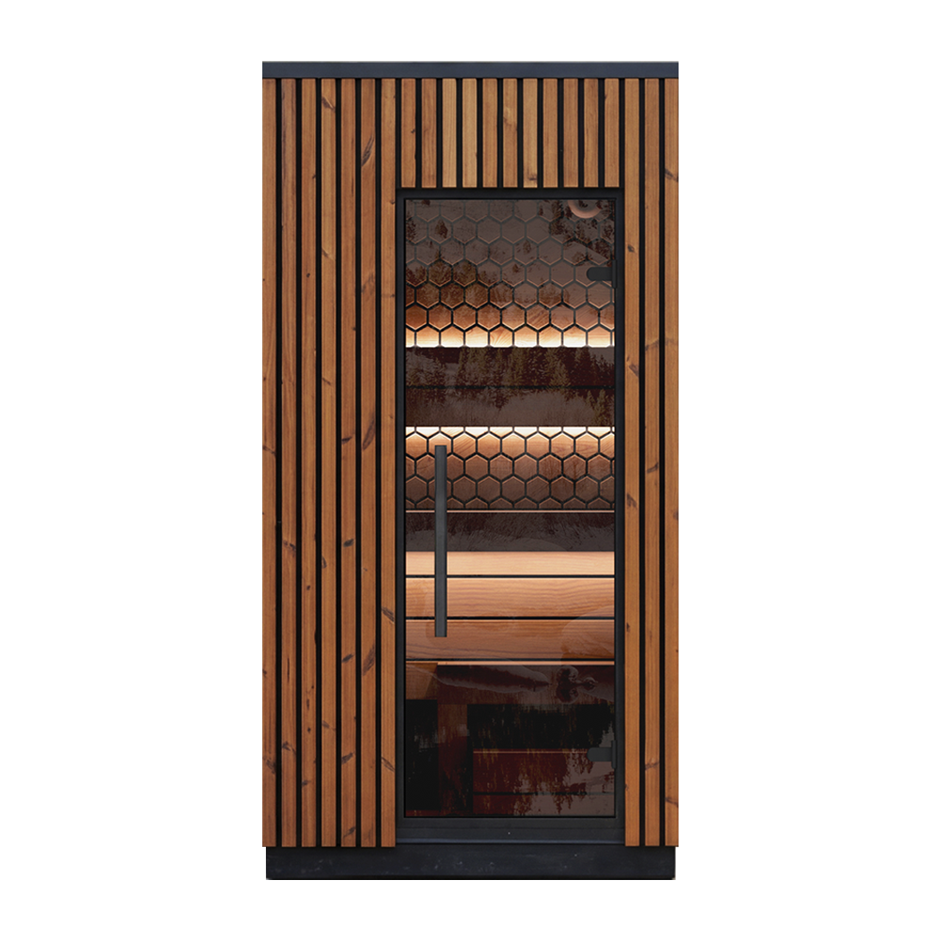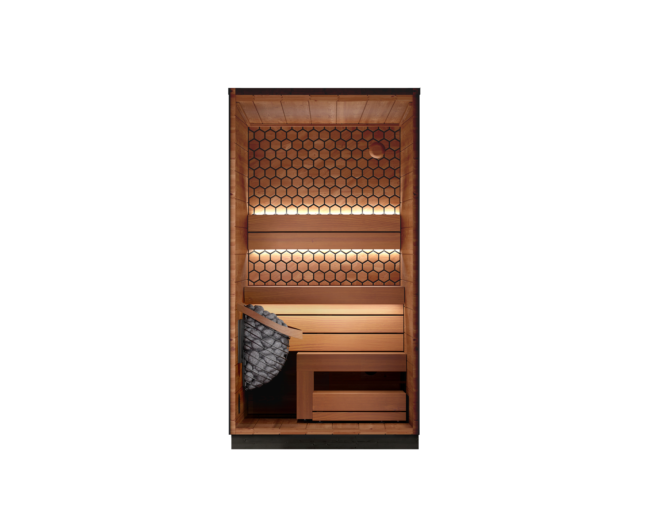 Our most compact, for one. Takes minimal space and is perfect for a private corner or terrace. Your personal sauna ready whenever you need a quiet reset.